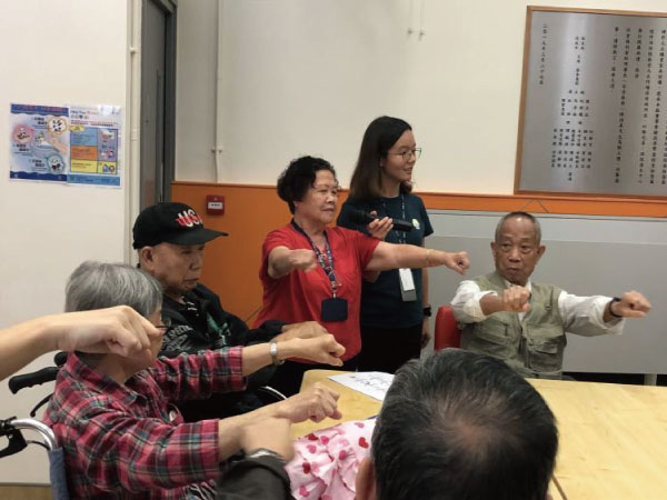 長者義工帶領長者做簡單手部運動
