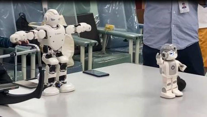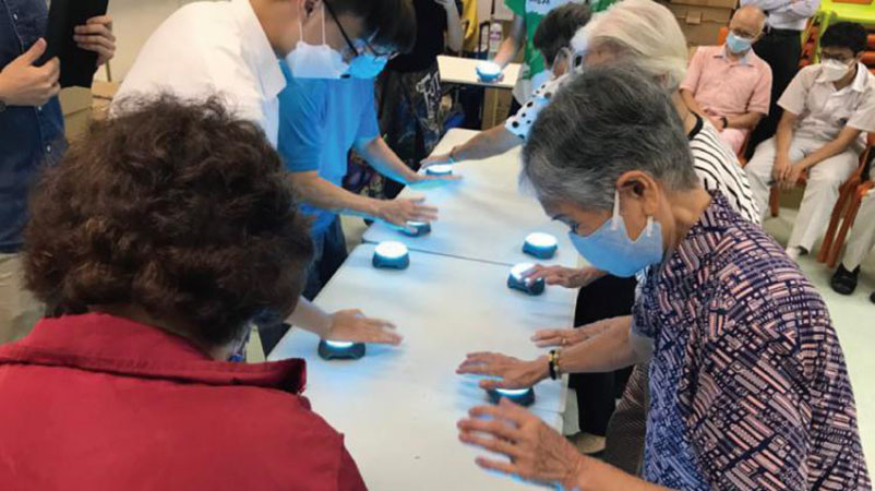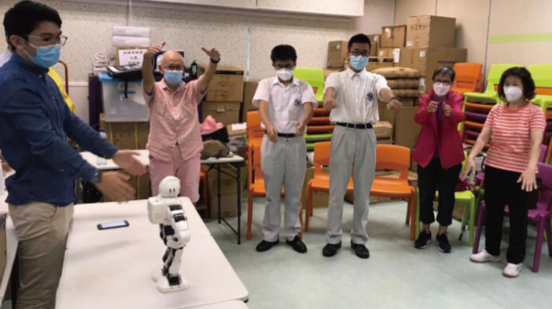 香港路德會社會服務處定期於長者中心舉辦「Hi Touch無界限小組」活動,參加者除了跟隨機械人的動作做運動外,還會與機械人進行互動,例如:兩位長者用手機程式操控機械人動作來踢足球,增加課堂趣味。