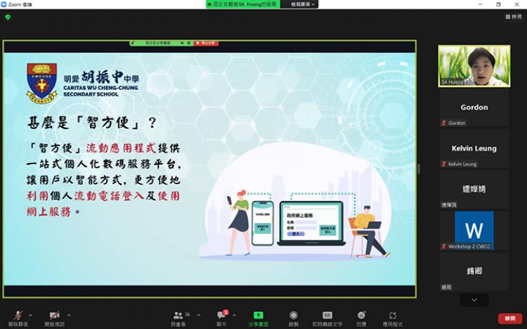 明愛胡振中中學長者學苑於2022年11月11日舉辦線上「智方便」數碼進階培訓班,長者學員正於網上教室學習「智方便」的各項功能,以便掌握在日常生活使用「智方便」及電子政府服務。